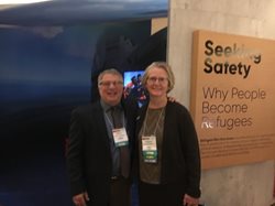 Incoming ASTMH President Patricia F. Walker, MD, DTM&H, (right, in photo) Medical Director at the HealthPartners Travel and Tropical Medicine Center at the University of Minnesota, said the exhibit offers an accurate assessment of the incredible progress that has occurred in the field of refugee health.