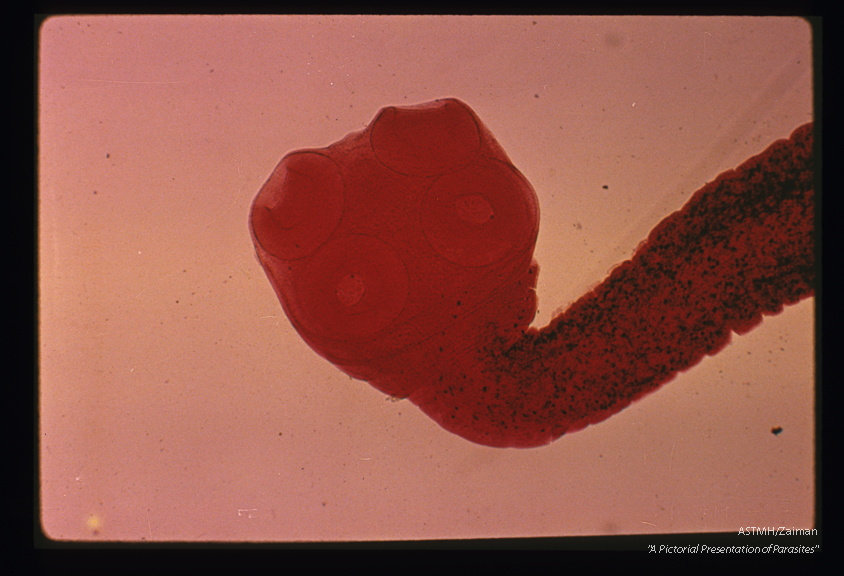 Description: Scolex. Four suckers but no hooks are seen on this scolex.