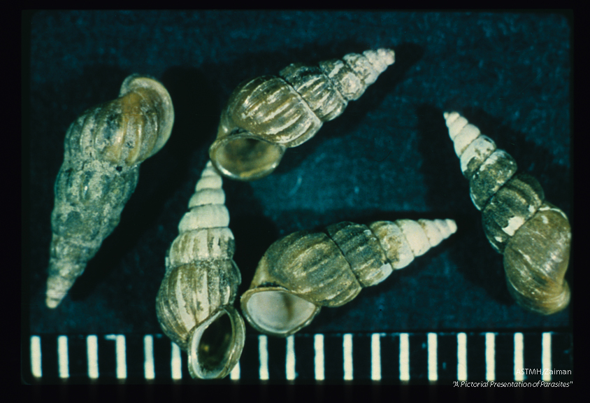 Description: Snail shells. These molluscs are an intermediate host of Schistosoma japonicum.
