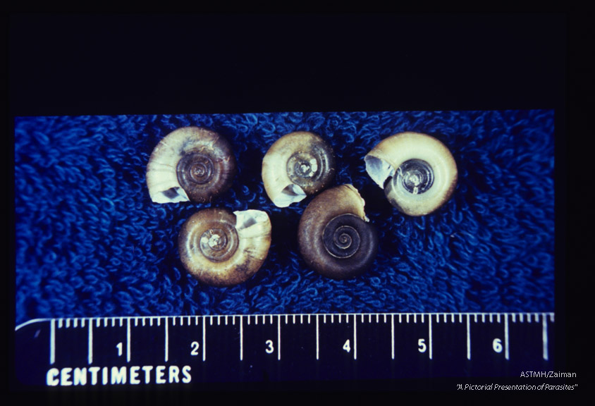 Description: Shells, from Minas Gerais and St. Lucia respectively; intermediate hosts for Schistosoma mansoni.