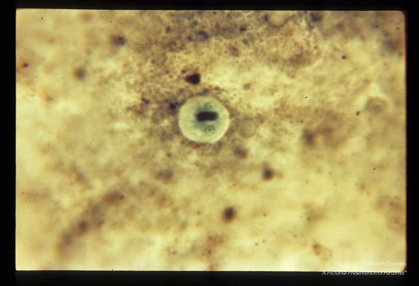 Cysts in stool. Chlorazol black stain.