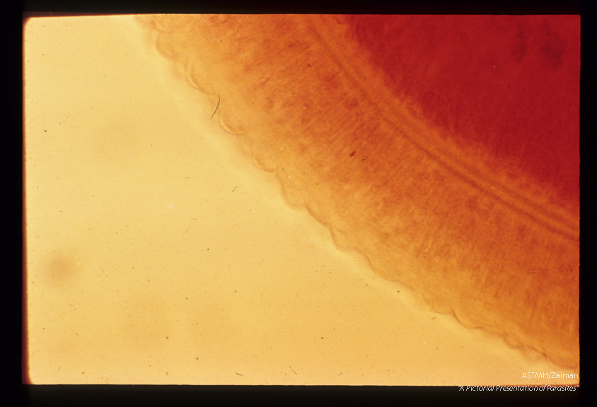 Description: Cuticle of male trematode showing characteristic tubercles.