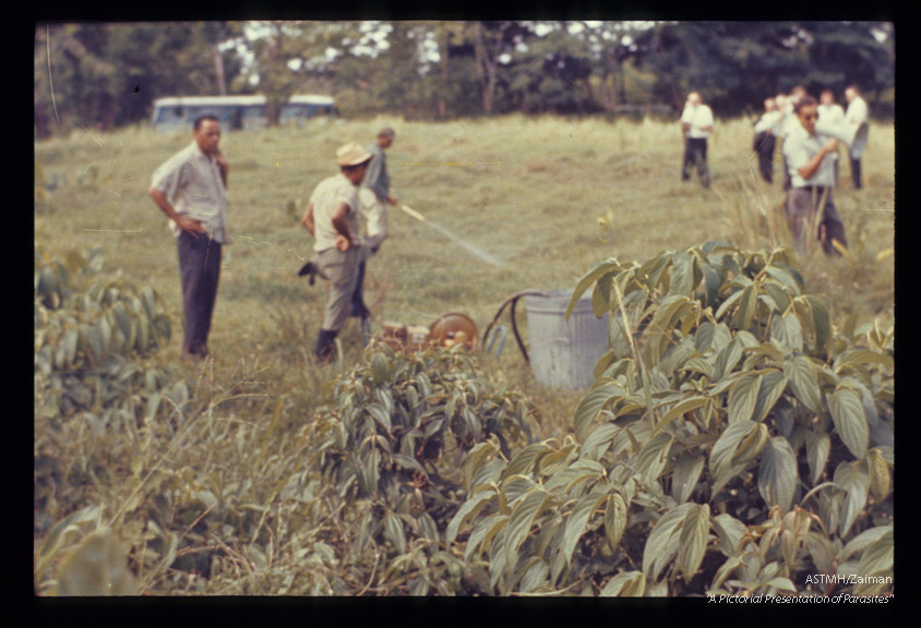 Description: Spraying stream with molluscicide in Puerto Rico.