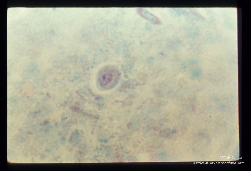 Description: Cyst in stool, trichrome stain.