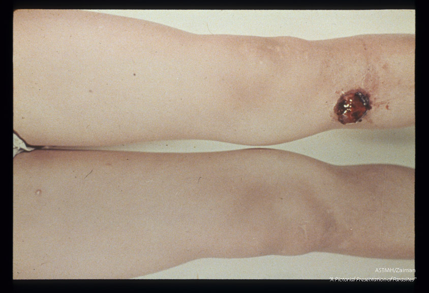 Description: Gigantic verrucous eruption on legs.