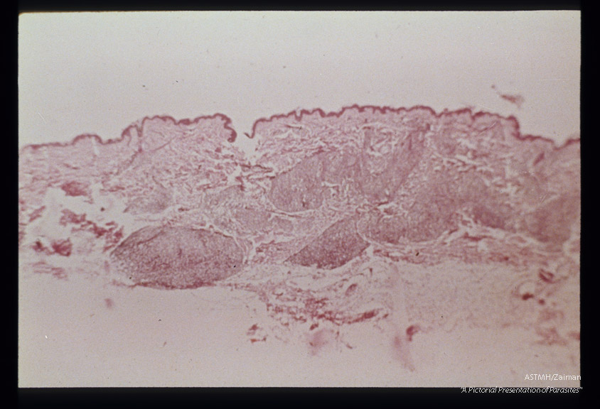 Description: (South America). Hematoxylin-eosin stained section through a pseudo-lepromatous lesion.