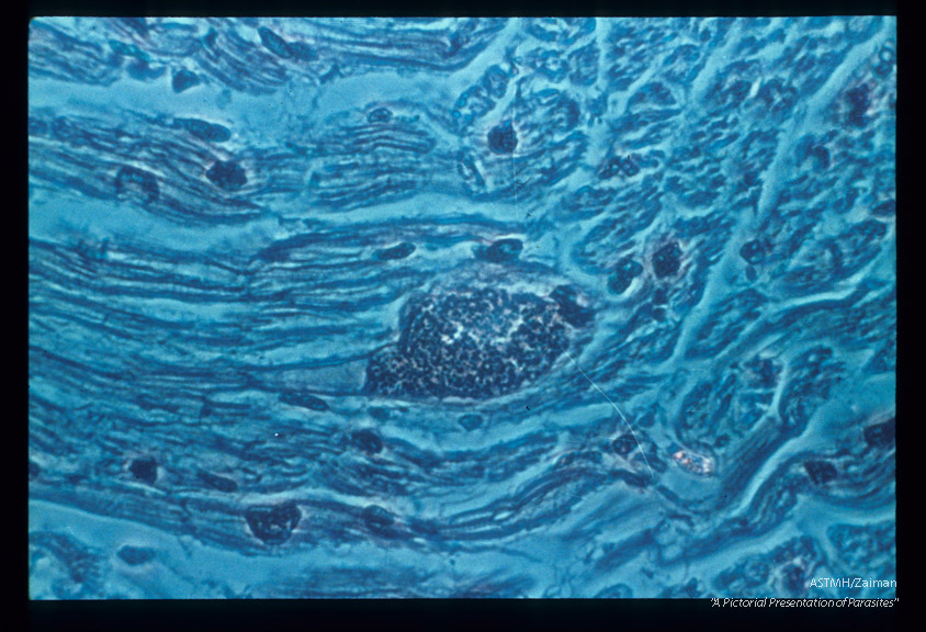 Hematoxylin-eosin stained (phase microscopy) section of infected myocardium.