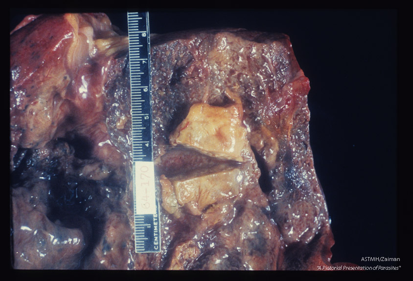 Description: Hepato-pulmonary abscess communicating with bronchus.