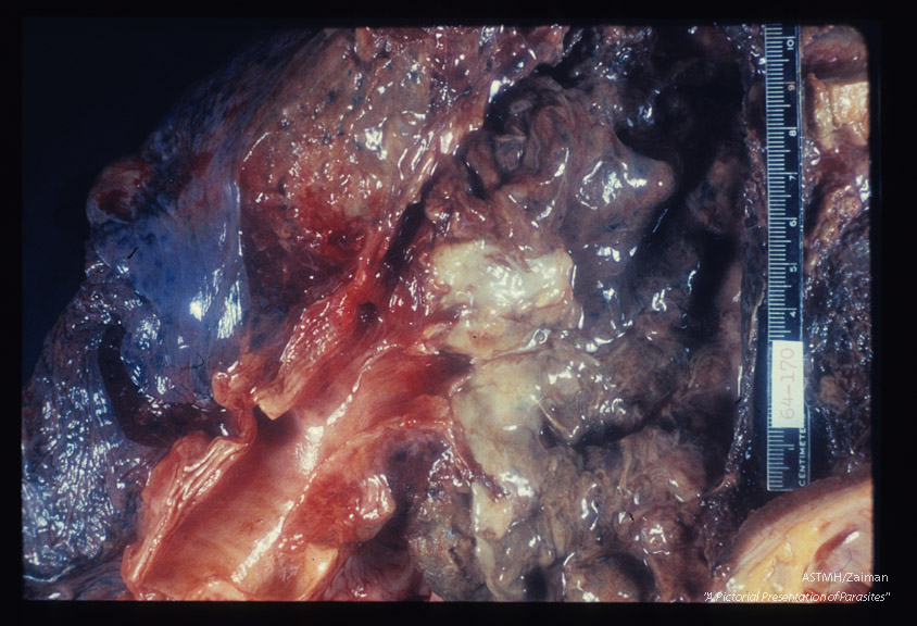 Description: Hepato-pulmonary abscess communicating with bronchus.