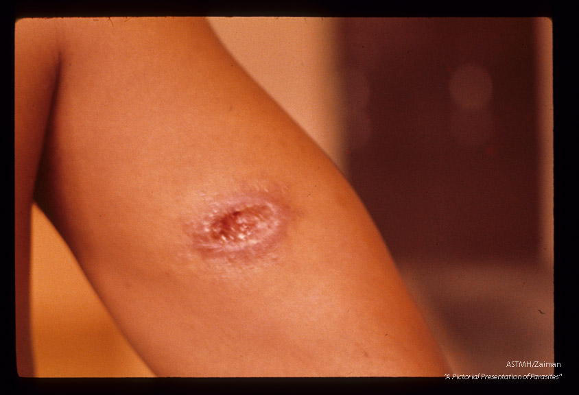 Description: Ulcer at site of 3 week old Phlebotomus bite.