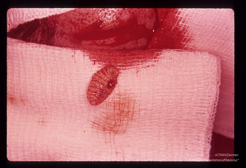 Description: Incised occipital scalp of 11 year old boy from which a larva was removed.