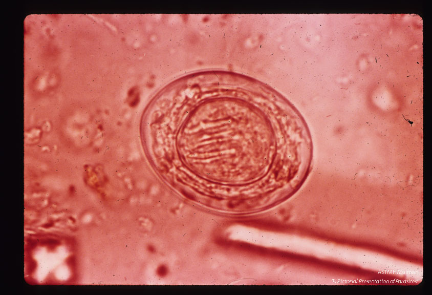 Description: Egg in iodine stained stool emulsion.
