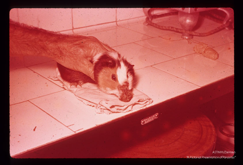 Description: Guinea pig with lesion on nose.