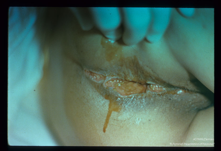 Description: Perirectal muco-cutaneous amebiasis.