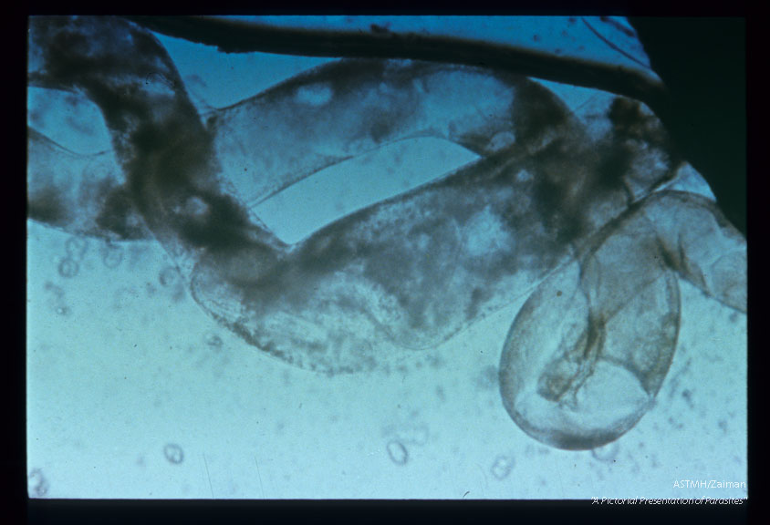 Description: Larvae in the malpigian tube, 12 days after ingestion by Aedes togoi.