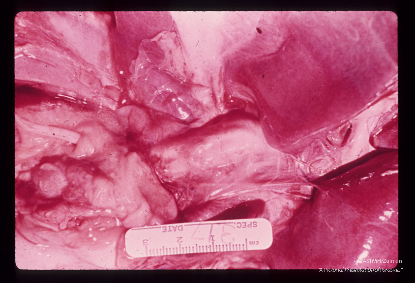Description: Autopsy specimen showing adult in ampulla of Vater.