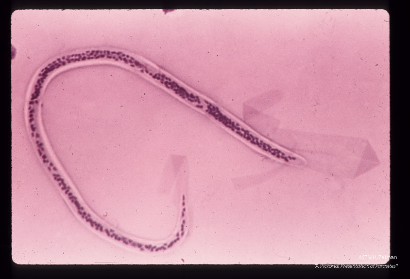 Description: Entire microfilaria in blood film.