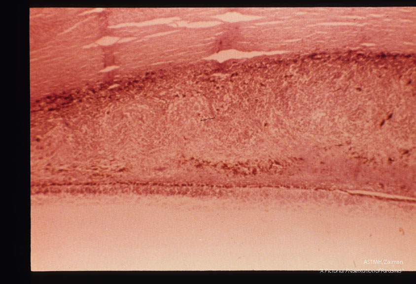 Description: Toxoplasmic retinochoroiditis is associated with tachyzoites. Granulomatous reaction is present in choroid.