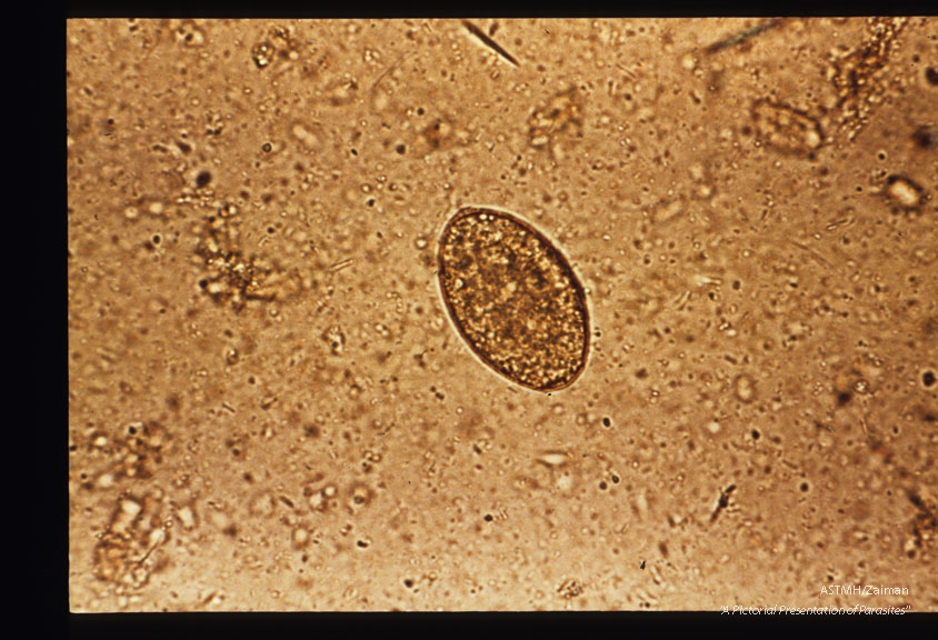 Description: Egg in stool. Iodine stained.