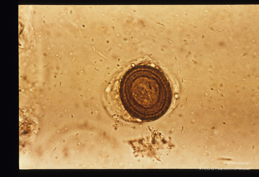 Description: Egg in stool. Iodine stained.