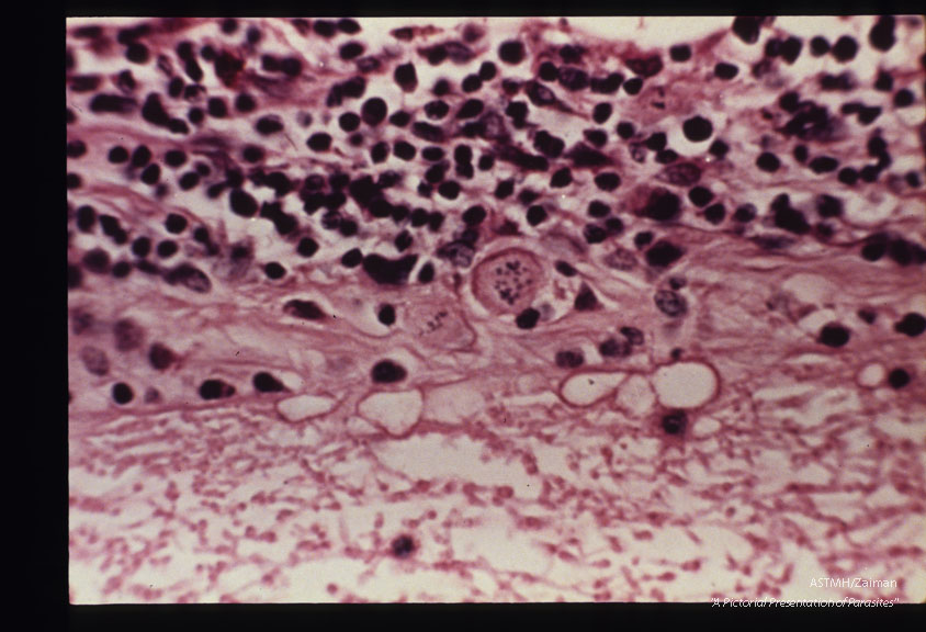 Description: Rabbit retina with newly formed Toxoplasma cyst.