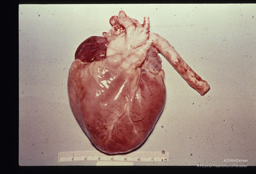 Heart showing typical pale, wet, flabby, swollen appearance due to myocarditis.