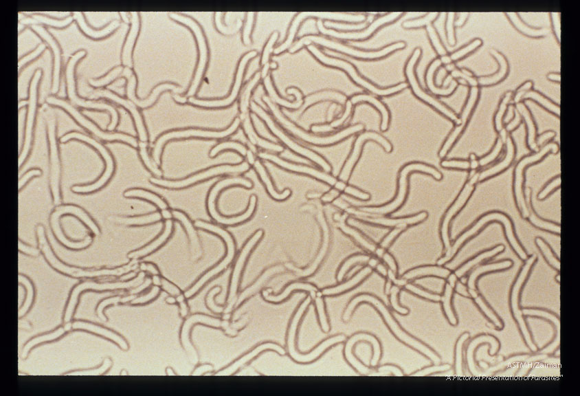 Description: Newborn larvae of Trichinella spiralis.