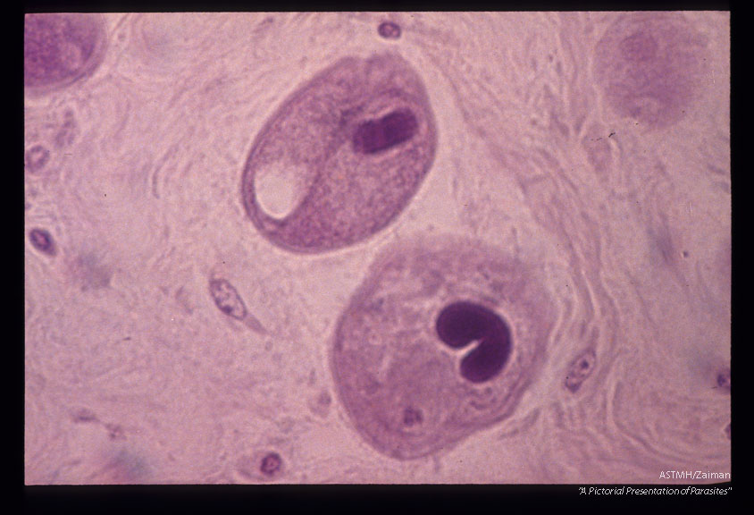 Description: Trophozoites. Note the contractile vacuole and the macroneucleus.