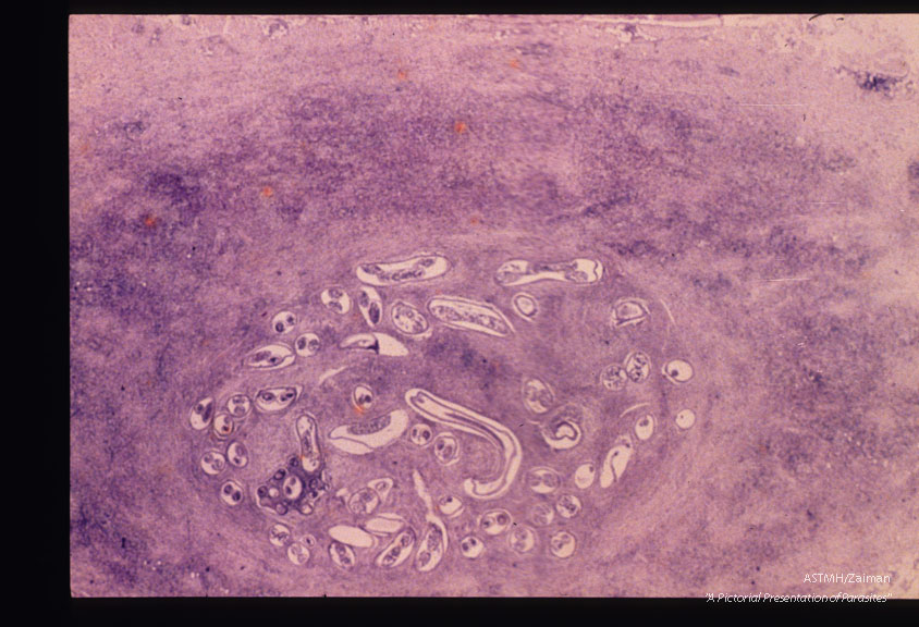 Description: Nodule showing considerable host inflammatory response around the adult worms.