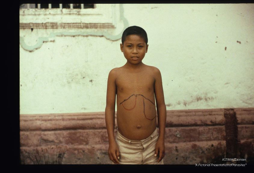 This youngster had Paragonimus westermani, Schistosoma japonica, Ascaris lumbricoides, hookworm, Trichuris trichiura, Taenia, and Entamoeba histolytica. He was from Leyte.