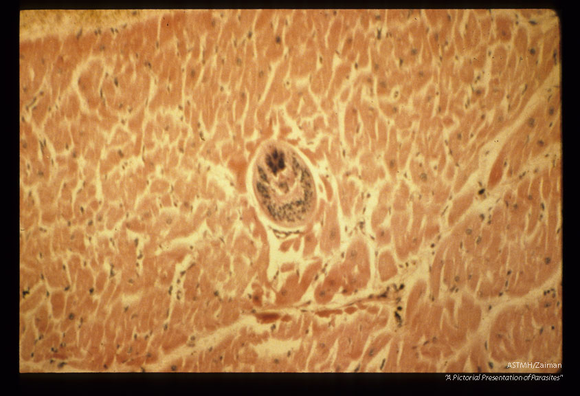 Heart showing hemorrhage and mesocercaria.
