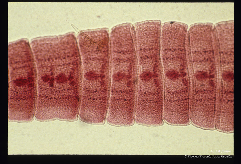 Description: Maturing proglottids one of which shows a tandem duplication of the reproductive system.