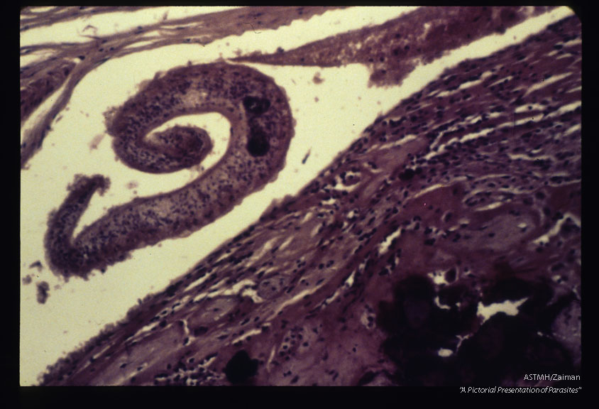 Description: Adult worm within a decidual vessel .