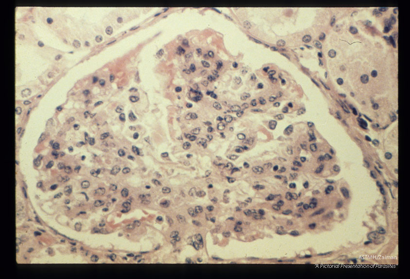 Description: Nephropathy in chimpanzee with pipe stem fibrosis. Note mesangial proliferation.