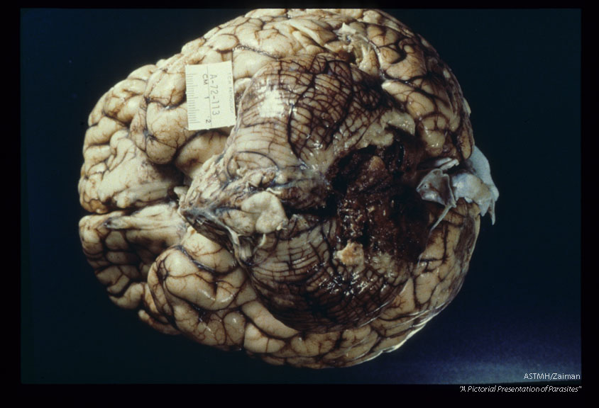 Fatal case with uveitis and meningoencephalitis. Gross pathology.