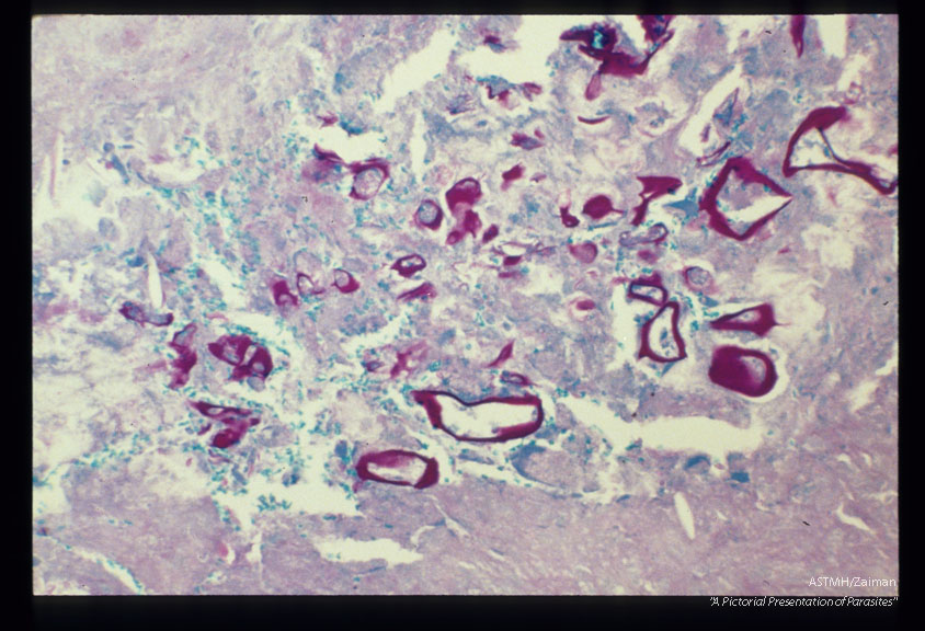 PAS stain of infected human liver.