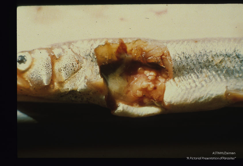Description: Plerocercoids in a smelt, Osmerus eperlanus.