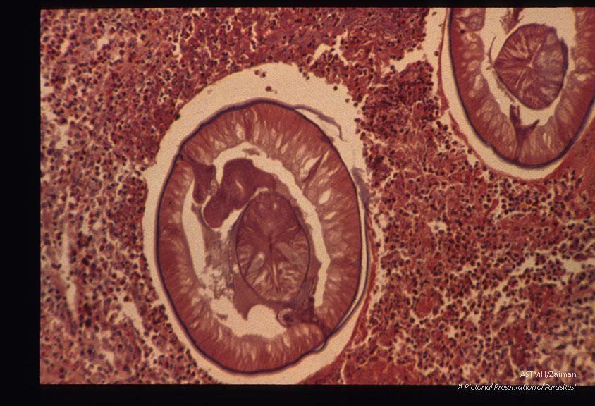 Another case from Holland. Low and high power magnifications of worms in stomach wall.