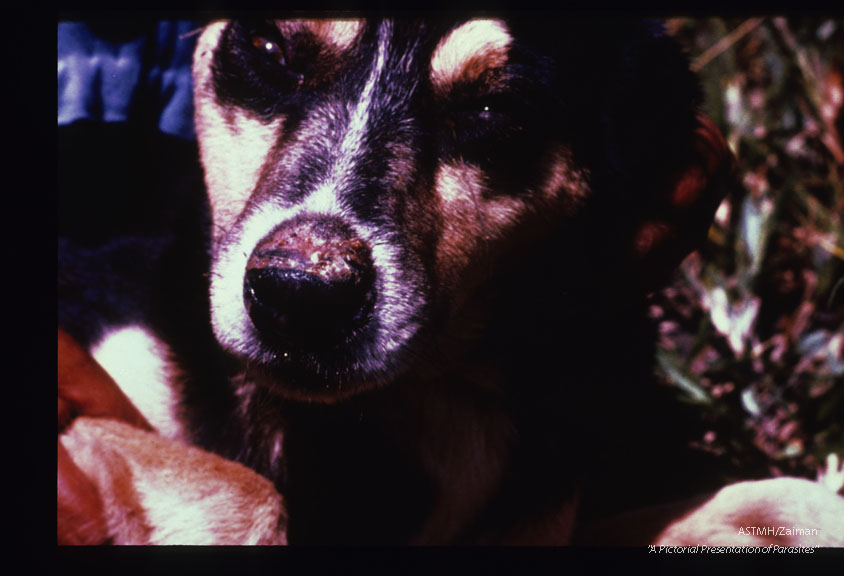 Description: Ulcer on the nose of a domestic dog in Bolivia.