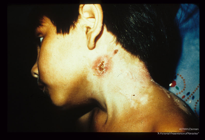 Description: Neck abscess in 7 year old girl which drained approximately fourty nematodes. Each about one cm. long.