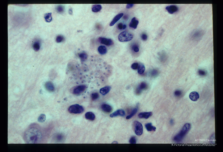 Description: Low and high power films of child's brain showing parasites and associated inflammatory reaction.