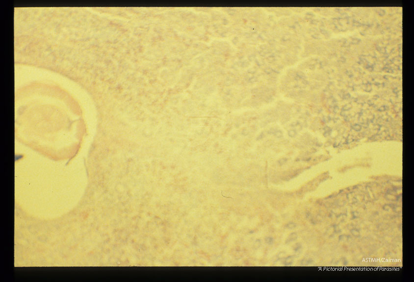 Photomicrograph of section through larvae in the submucosa of a pig.