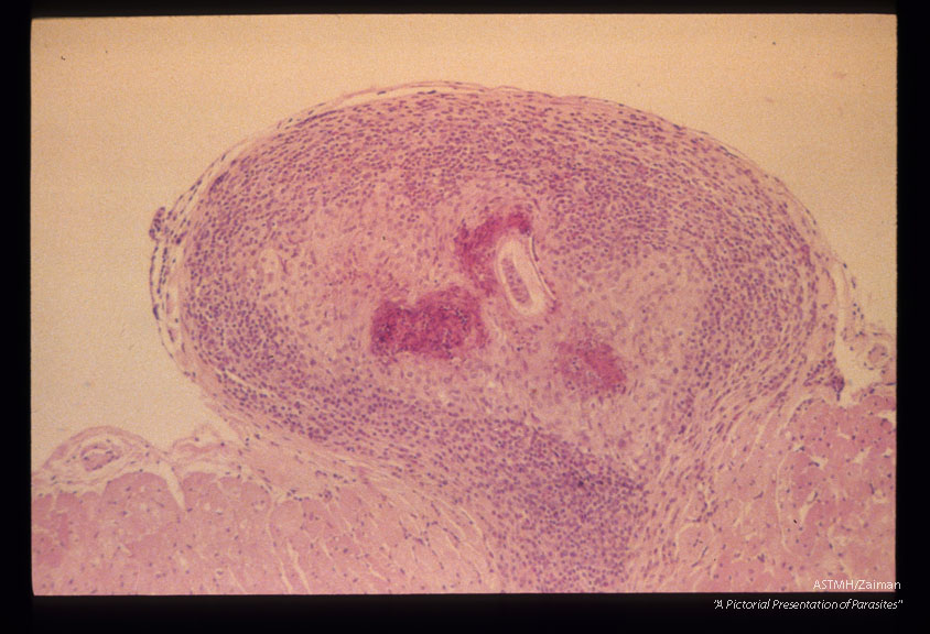 Description: Epicardial granuloma with larva in an infected rabbit.