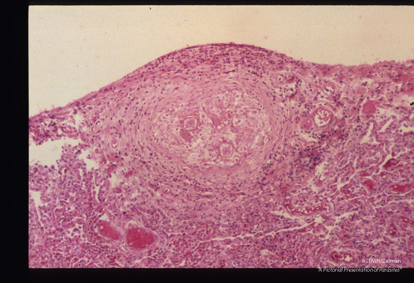Description: Same case. Subpleural pulmonary granuloma with larva.