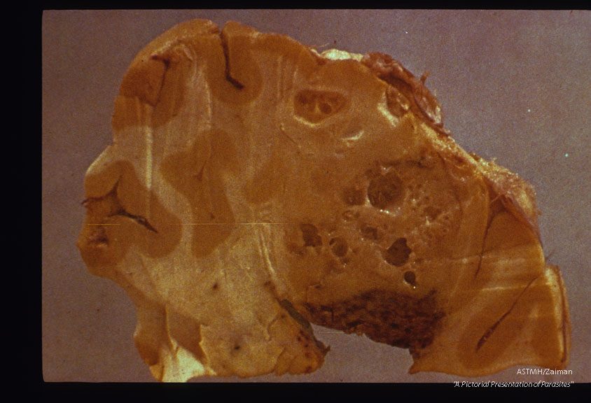 Description: Racemose cyst in brain. Autopsy. Gross specimen.
