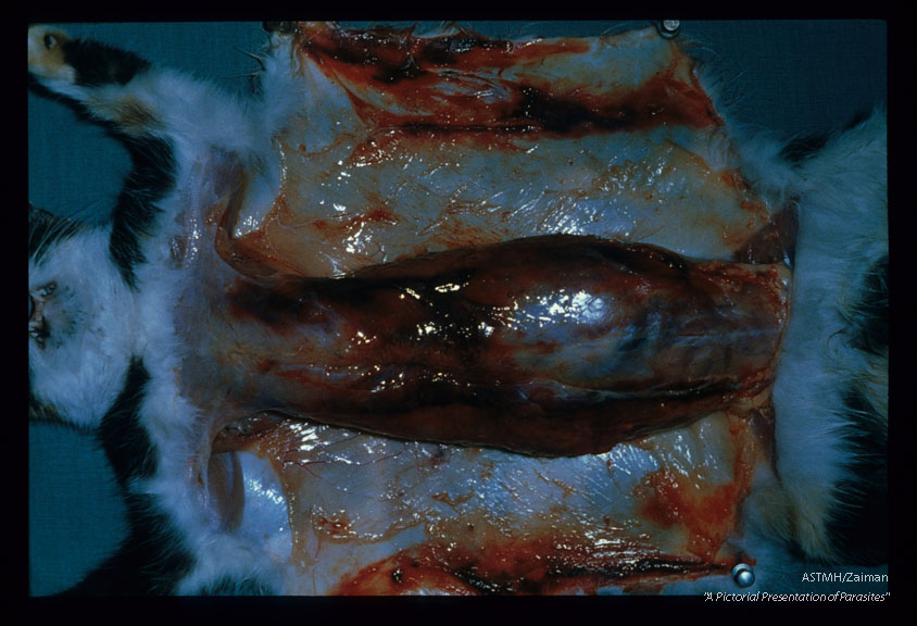 Description: Severe hemorrhage and death of a cat experimentally infected some 51 days earlier.