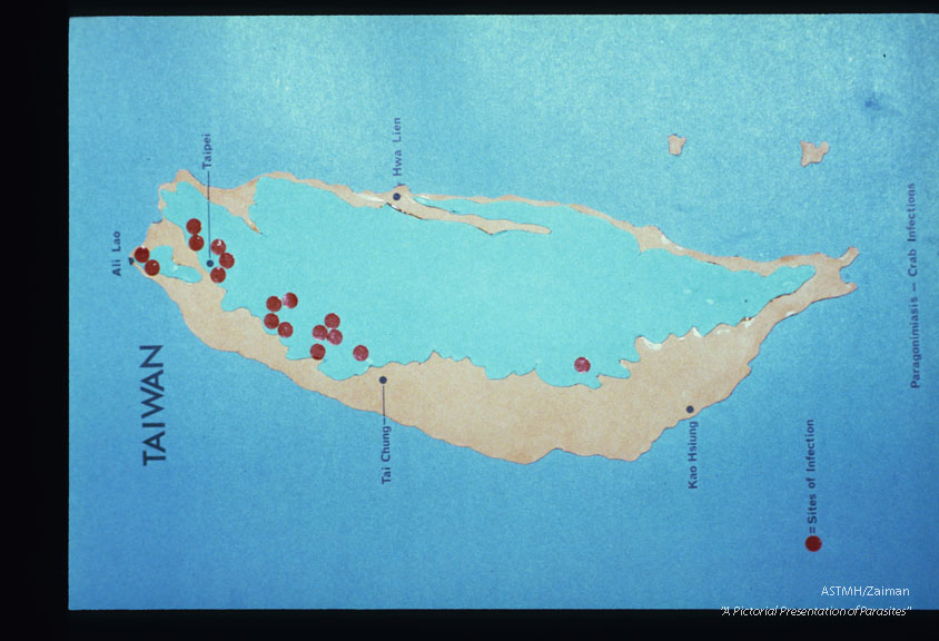 Description: In Taiwan, Paragonimus is found in a number of localities, mostly in the northern third of the island (see map). Incidence ranges from about 5% to 20% in closely knit villages like Ali-lao. a farming and fishing village at the tip of the island.