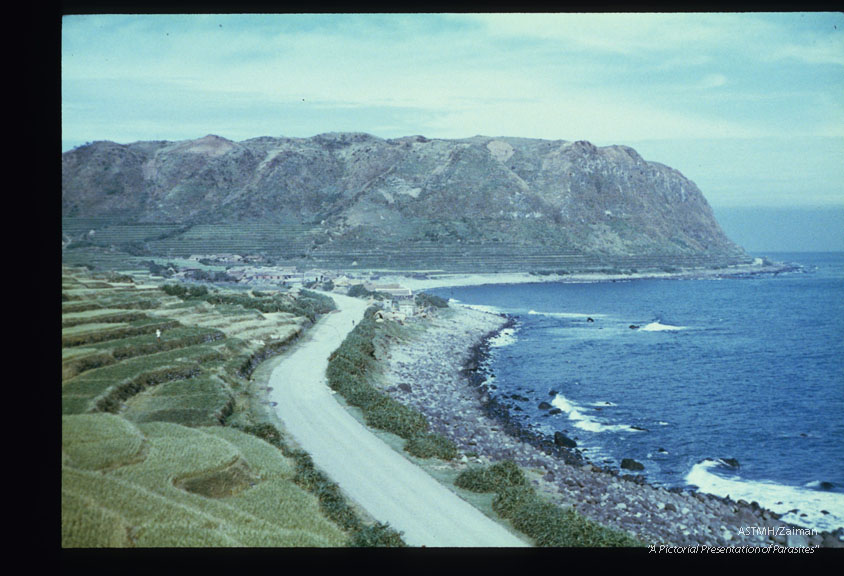 Description: Village of Ali-lao at the northern tip of the island. The valley opens into the South China Sea. A road runs around the periphery of the island.