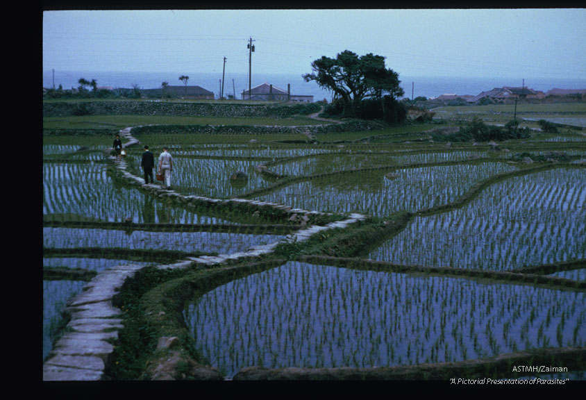 Description: Rice paddies which here border both sides of the contaminated stream, may serve as a secondary habitat for the snails and crabs as well as a source of water and feces for those animals.