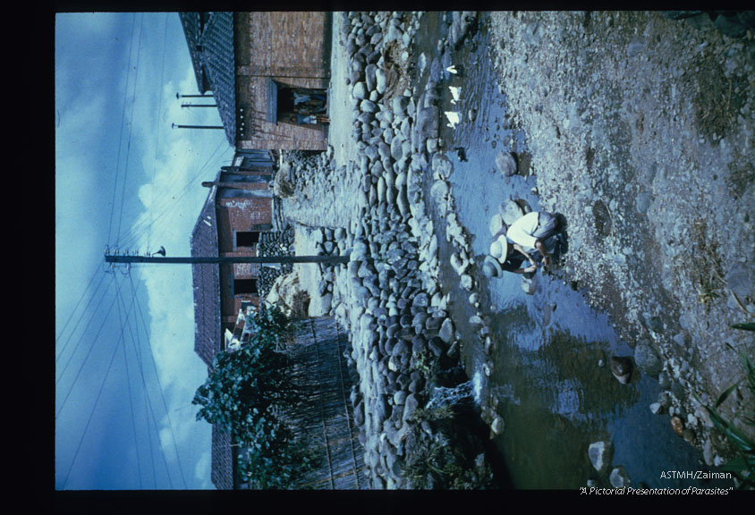 Description: The stream is an important feature in village life serving as a place to fish, go crabbing, and to socialize while washing clothes, dinnerware, or oneself. It also serves as a source of water for the natives and animals.